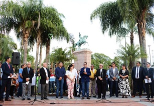 En el monumento ecuestre del General José de San Martín, autoridades municipales, encabezadas por Gustavo Martínez, y la Mesa Interreligiosa, realizaron una bendición por la apertura de la Plaza 25 de Mayo. Esta fue la primera actividad en una semana donde habrá diferentes propuestas artísticas y culturales para celebrar la renovación del espacio más característico de la ciudad.
