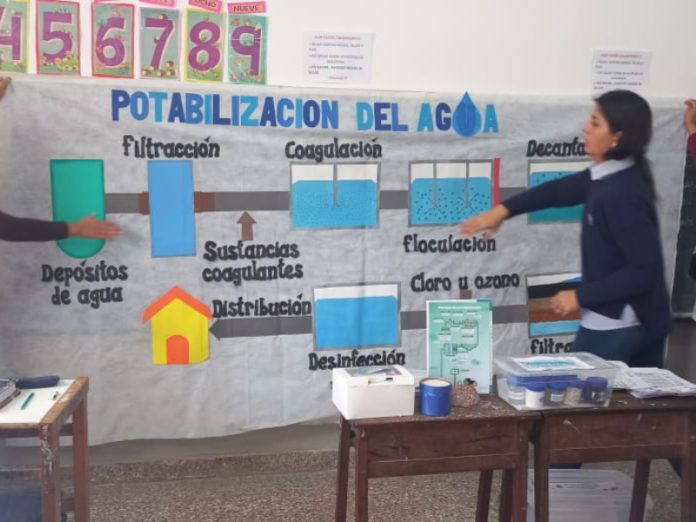 La empresa provincial participa de varias ferias de ciencias y actividades en establecimientos educativos, coordinando además la visita de estudiantes a las plantas potabilizadora y de ósmosis.
