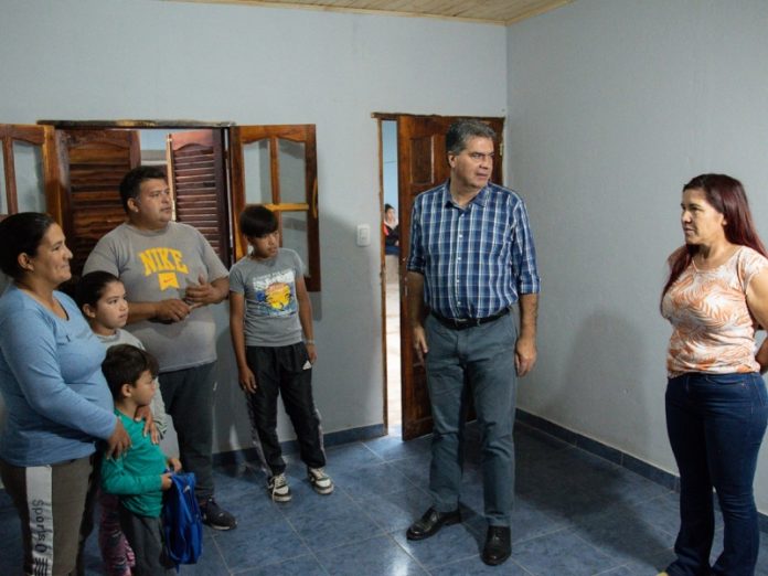 El gobernador Jorge Capitanich entregó este sábado siete soluciones habitacionales construidas en los barrios Santa Bárbara 2 y Villa Allín de Fotnana a través del Instituto de Agricultura Familiar y Economía Popular (IAFEP) junto a las fundaciones “Desarrollo Territorial de Base” e “Innovando Futuro”, en el marco del programa de construcción de viviendas populares.