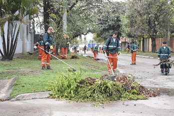 Para ello, se puso en marcha un sistema para que los empleados que cumplen labores administrativas en la Municipalidad, se sumen a los servicios que consisten en el barrido de calles, recolección de restos verdes y limpieza de canales, alcantarillas y bocas de tormenta.