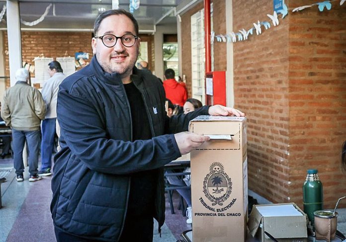 Minutos antes de las 9 de la mañana de este domingo emitió su voto en la mesa 11 de la Escuela 42 de Resistencia Santiago Pérez Pons, precandidato a primer diputado provincial por el Frente Chaqueño.