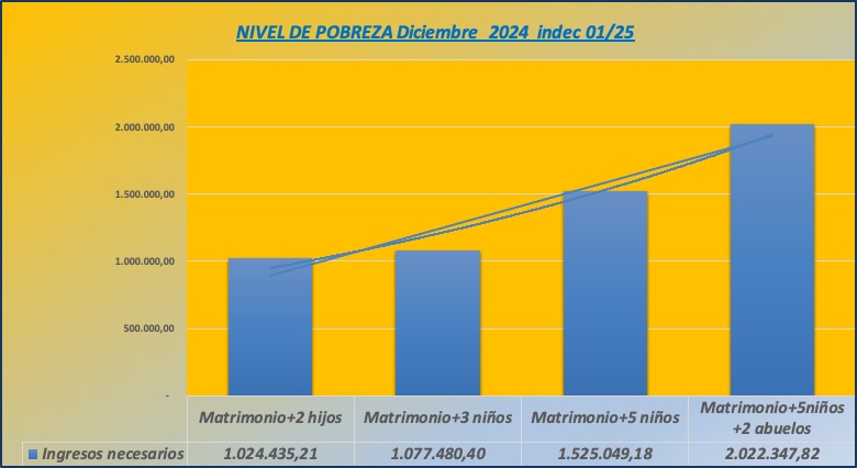 Para no ser pobre una familia de cinco integrantes y dos mayores requirió en Diciembre de 2024 contar con $2.022.347 de bolsillo