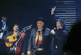 El mandatario salió a escena durante la madrugada del sábado aceptando saludos y regalos del público; interpretó “Amor salvaje” junto al cantante, que pidió la liberación del gendarme Nahuel Gallo