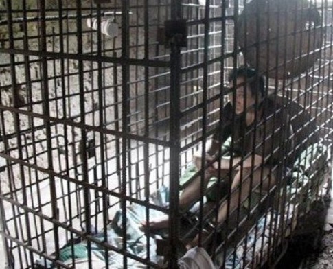 En una pequeña ciudad de China una mujer mantuvo encerrado en una jaula de hierro a su hijo durante los últimos once años "para seguridad de los vecinos".