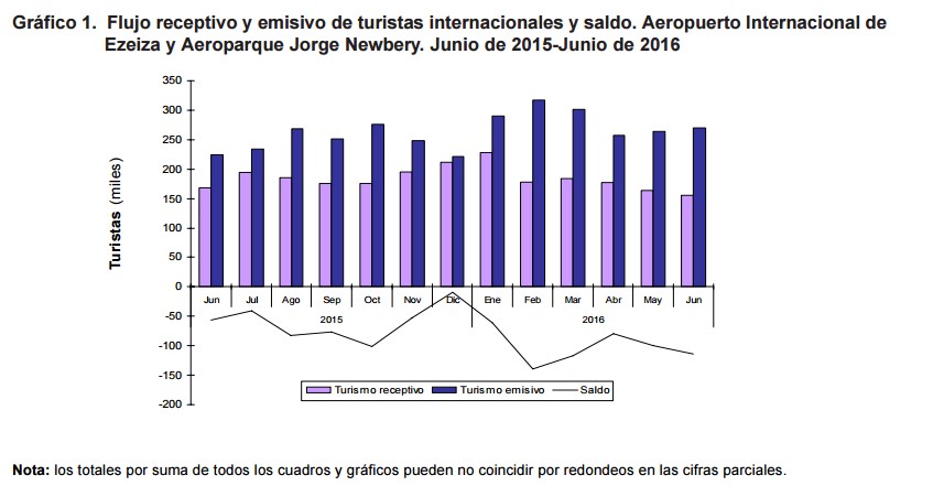 La llegada de turistas al país en junio cayó un 7,3 por ciento en la medición interanual, mientras las salidas al exterior de residentes subieron 20,6%, informó hoy el INDEC.