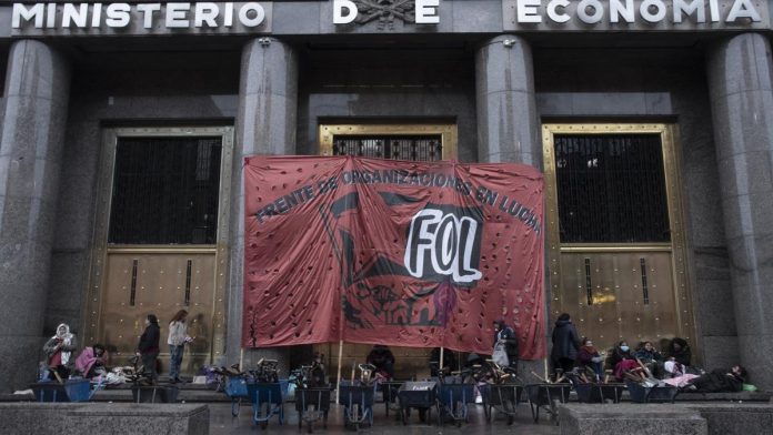 Nacionales | El Frente de Organizaciones en Lucha (FOL) junto a otras agrupaciones sociales realizan un acampe frente al Ministerio de Economía, "en defensa de la urbanización de los barrios populares y de los puestos de trabajo".