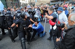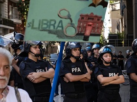 Nacionales | En un nuevo repudiable episodio de represión, Gendarmería y Prefectura avanzan sobre los jubilados y los hinchas de diferentes clubes que se hicieron presentes este miércoles en el Congreso para protestar contra el ajuste de Javier Milei. "¿Tampoco se puede reclamar en la vereda? ¿Dónde estamos?", grita un hombre en la cara de uno de los efectivos, mientras las fuerzas de Seguridad protagonizan un nuevo episodio represivo.