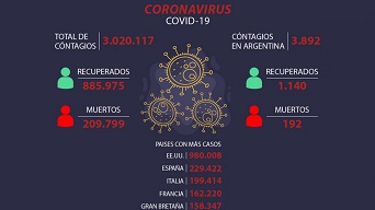 Internacionales | Son los datos de la pandemia de coronavirus Covid-19 en todo el mundo, donde Estados Unidos sigue como el más complicado. Los muertos superan los 210 mil.