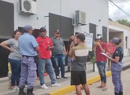 Locales | Este mediodía, personal de la Municipalidad local denunció a un grupo de personas que se encontraba frente al establecimiento y que en medio de la protesta golpeó la puerta de acceso y arrojó pirotecnia, causando daños a la estructura.