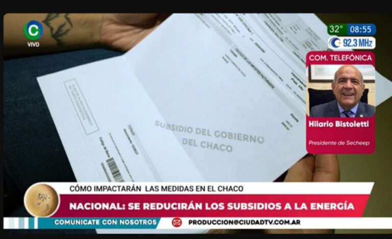 Locales | El titular de la empresa SECHEEP, Hilario Bistoletti, tras el anuncio del ministro de Economía, Luis Caputo, que confirmó la quita de los subsidios nacionales por energía. En el caso de la empresa estatal que provee de luz eléctrica a los hogares del Chaco, aún no cuenta con información precisa sobre el porcentaje de quita que impactará directamente en las facturas de luz. "No sabemos si el 10%, el 15% o si lo sacarán todo de una", afirmó el funcionario y confirmó que en cuanto tengan definiciones sobre ese anuncio se informará de inmediato a la población.