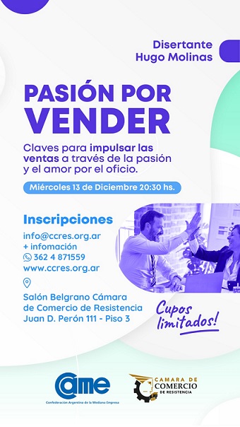 Locales | Desde la Cámara de Comercio de Resistencia dieron a conocer detalles sobre la última capacitación del año, que tendrá lugar, el miércoles 13 de diciembre, a partir de las 20.30, en su sede institucional, ubicada en Juan D. Perón 111, 3° piso.