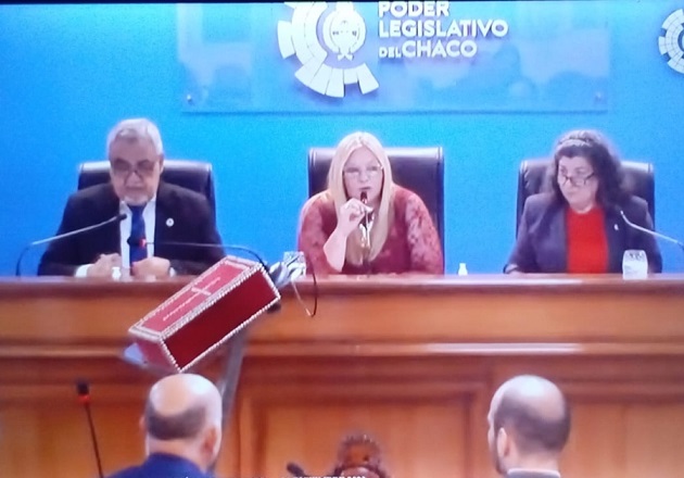 Locales | Con 18 votos fue proclamada en el pleno la diputada radical Carmen Delgado Brito, como presidenta del Poder Legislativo del Chaco para el periodo 2023-2025. Atlanto Honcheruk había sido propuesto por sus pares del interbloque Frente Chaqueño. En la sesión preparatoria, también juraron las nuevas autoridades electas. La Vicepresidencia 1ra será ocupada por la diputada del bloque CER, Andrea Charole, y la Vicepresidencia 2da, por Darío Bacileff Ivanoff del Frente Integrador.