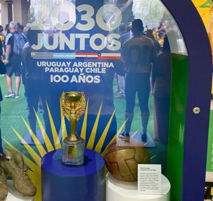 Nacionales | “La FIFA tiene la obligación de honrar la memoria del primer Mundial”. La Conmebol montó en el barrio Msheireb de Doha un complejo de promoción y Alejandro Domínguez, titular de la Confederación, reafirmó el sueño. Claudio Tapia, presidente de la AFA, habló de la infraestructura que la Argentina podría ofrecer