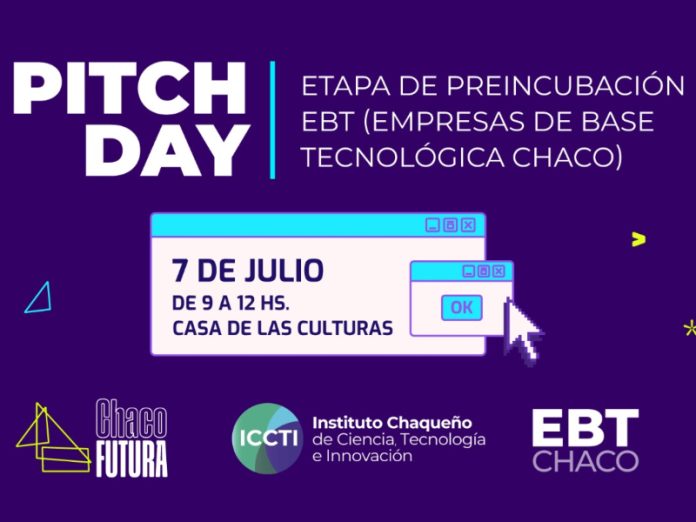 Locales | El Instituto Chaqueño de Ciencia, Tecnología e Innovación (ICCTI) invita a participar del Pitch Day, que se realizará el viernes 7 de julio, de 9 a 12, en el auditorio de Casa de las Culturas (Marcelo T. de Alvear 90), en el marco de la Expo Chaco Futura. Cada emprendimiento deberá exponer su proyecto y modelo de negocio frente a un jurado especializado que deberá avalar la propuesta.