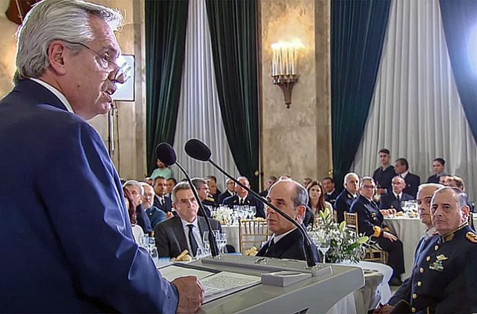 Nacionales | "El mejor homenaje que podemos rendirles a nuestros héroes (de Malvinas) es continuar exigiendo que el Reino Unido acate las resoluciones internacionales", indicó Alberto Fernández en la tradicional Cena de Camaradería anual de las Fuerzas Armadas. Además, anunció un "proceso de regularización salarial" para las mismas, que incluirá una "jerarquización profesional y reordenamiento salarial que se hará efectivo a lo largo del año".
