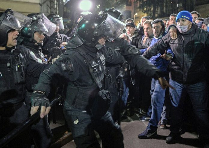 Nacionales | Mientras los militantes se acercaron a la casa de Cristina Kirchner para brindarle su apoyo - tras el pedido de condena del fiscal Diego Luciani - y otros pocos también se agruparon en el cruce de las calles de Juncal y Uruguay pero para insultar a la vicepresidenta, la Policía de la Ciudad decidió reprimir con gases lacrimógenos la movilización de los simpatizantes del Frente de Todos e incluso arrestar a un diputado provincial.