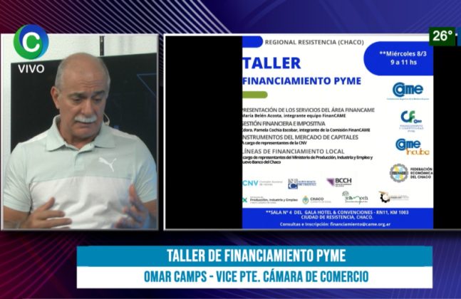 Locales | La Confederación Argentina de la Mediana Empresa (CAME) y la Cámara de Comercio del Chaco organizan un ciclo de talleres destinados para pymes, entre ellos, el de financiamiento que se desarrollará este miércoles, de 9 a 11,30, en el marco del Plenario de la Comisión Directiva que tendrá lugar hasta el jueves en el Centro de Convenciones Gala de Resistencia.
