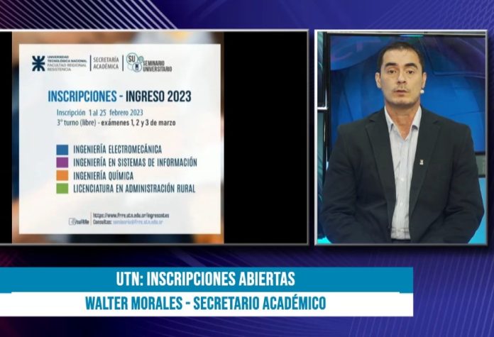 Locales | Walter Morales, secretario Académico de la Universidad Tecnológica Nacional, visitó los estudios de CIUDAD TV para dar a conocer las ofertas académicas por las cuales se mantiene abierto un nuevo periodo de inscripción para las carreras de Ingeniería en Sistemas de Información, Ingeniería Electromecánica, Ingeniería Química y Licenciatura en Administración Rural.