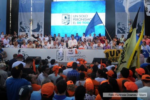 Nacionales | Los precandidatos a presidente del Frente para la Victoria Daniel Scioli, Sergio Urribarri y Agustín Rossi homenajearon al ex presidente Néstor Kirchner en el acto por el Día del Militante Peronista que compartieron en La Matanza.
