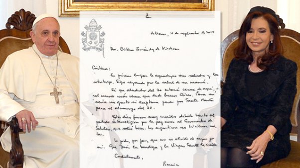 Nacionales | La Presidenta contestó en su cuenta de la red social Twitter la carta escrita a mano que el envió el Sumo Pontífice para un almuerzo privado en Santa Marta.