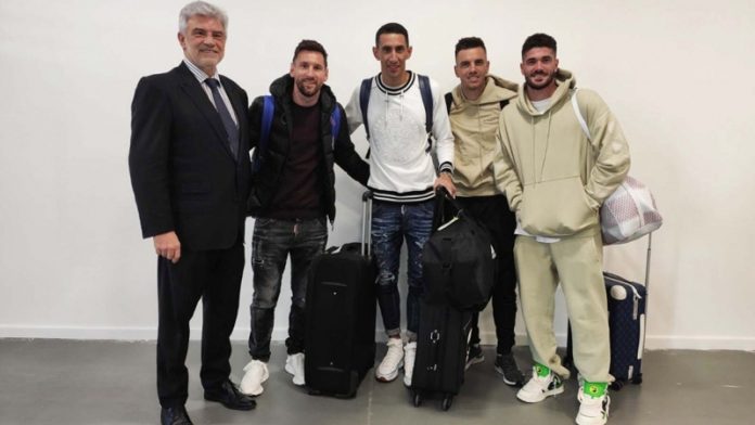Nacionales | El capitán albiceleste llegó al Aeropuerto Internacional Rosario "Islas Malvinas", en su avión privado junto a los rosarinos Ángel Di María y Giovani Lo Celso, y también se sumó Rodrigo De Paul, quien tras realizar trámites migratorios, tomó un vuelo hacia Buenos Aires.