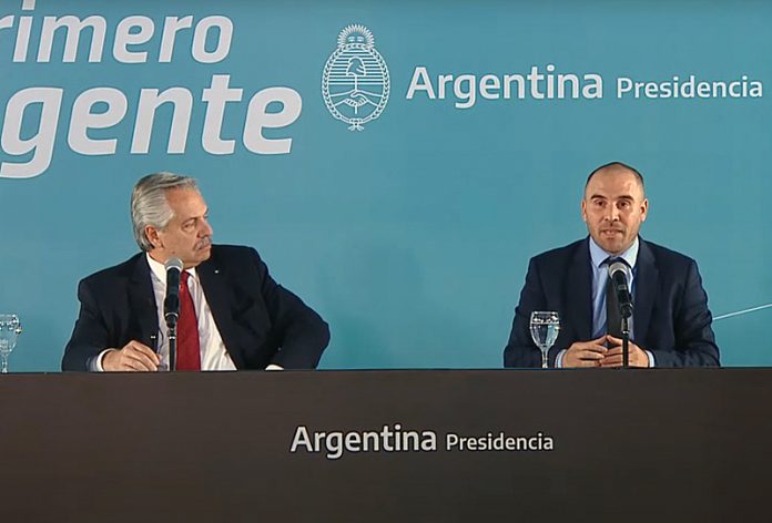 Nacionales | El presidente Alberto Fernández, junto al ministro de Economía, Martín Guzmán, efectuaron la presentación del proyecto. Dieron a conocer los detalles de la iniciativa que está dirigida para quienes se vieron beneficiados a partir del aumento de los precios internacionales a causa del conflicto bélico entre Rusia y Ucrania.