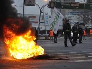 Nacionales | Portuarios realizan un piquete y queman gomas en la bajada Castillo. Hay un solo carril habilitado. Al paro también se sumaron los recibidores de granos y no hay actividades en los puertos de todo el país