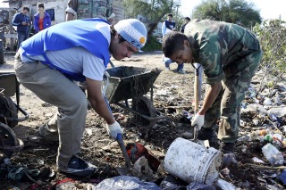 Nacionales | Militantes junto vecinos y miembros del Ejército Argentino realizan trabajos de limpieza en el barrio platense de Villa Elvira, en el marco de la Jornada Solidaria propuesta por Unidos y Organizados.