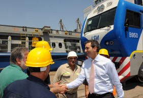 Nacionales | El ministro del Interior y Transporte, Florencio Randazzo, supervisó hoy el arribo a la Argentina de las dos primeras locomotoras nuevas para la línea ferroviaria San Martín.