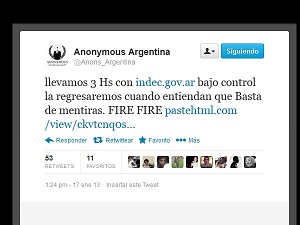 Nacionales | El grupo de activistas derribó la página del organismo, situación que ya se había observado en dos oportunidades durante los últimos meses de 2012. Es el primer ataque del año