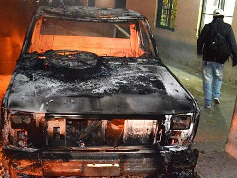 Nacionales | Los sindicalistas prendieron fuego una camioneta. También quisieron agredir al secretario general del gremio, Américo Palma. Denuncian que fueron suspendidos por falta de fondos para un plan de viviendas estatal