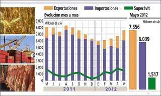 Nacionales | El superávit comercial argentino acumuló U$S 6.312 millones en los primeros cinco meses del año, lo que representó un crecimiento de 32,43% en comparación con el mismo periodo de 2011.
