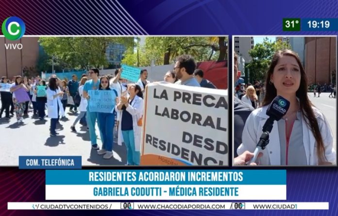 Una de las referentes de las movilizaciones del sector realizadas los últimos días, que concluyó este martes con un acuerdo salarial con el Gobierno, la doctora Gabriela Codutti, en CIUDAD TV, lamentó la represión de la mañana y celebró el acuerdo de la tarde. Indicando que, ''en diciembre vamos a llegar a 140 mil pesos, pero estamos por debajo de los colegas de Formosa, Corrientes y Misiones”. Aseguró que nunca se dejó de atender a los pacientes.