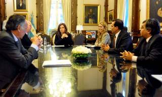 Nacionales | La presidente Cristina Fernández de Kirchner, junto a la ministra de Industria, Débora Giorgi, recibió al presidente de la firma Cerámica del Norte, Juan José Soler, quien anunció una inversión de 50 millones de pesos para la instalación de una nueva planta en Salta.