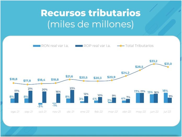Locales | Con una recaudación de $30.946 millones en julio, el informe del Ministerio de Planificación, Economía e Infraestructura mostró un aumento sostenido de los ingresos. La recaudación nacional tuvo incrementos por quinto mes consecutivo. La provincial, lleva creciendo 17 meses por encima de la inflación.