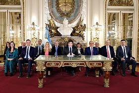 Locales | Escoltado por su gabinete, Javier Milei brindó un mensaje por cadena nacional en el celebró el nuevo pacto sellado con el Fondo Monetario Internacional (FMI), que consiste en un desembolso de US$20.000 millones para recapitalizar el Banco Central y poder avanzar con el levantamiento del cepo cambiario a partir de pasado mañana. El comunicado presidencial se concretó a las 22.30 de este viernes, apenas después de que el organismo de crédito oficializara el nuevo acuerdo con un comunicado.