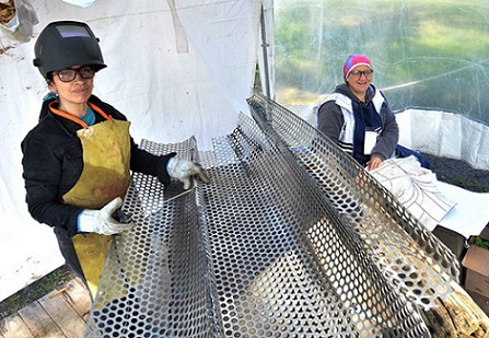 Locales | En el espacio de Escultores Argentinos Invitados se puede ver a la escultura Mónica Souza que empieza a ondear la chapa, su material primario. Arma una gran vestimenta que será la transparencia de una mujer elevándose al cielo. Souza viene de Mendoza y erigirá esta obra titulada “Trascender. Homenaje a los colibríes”.