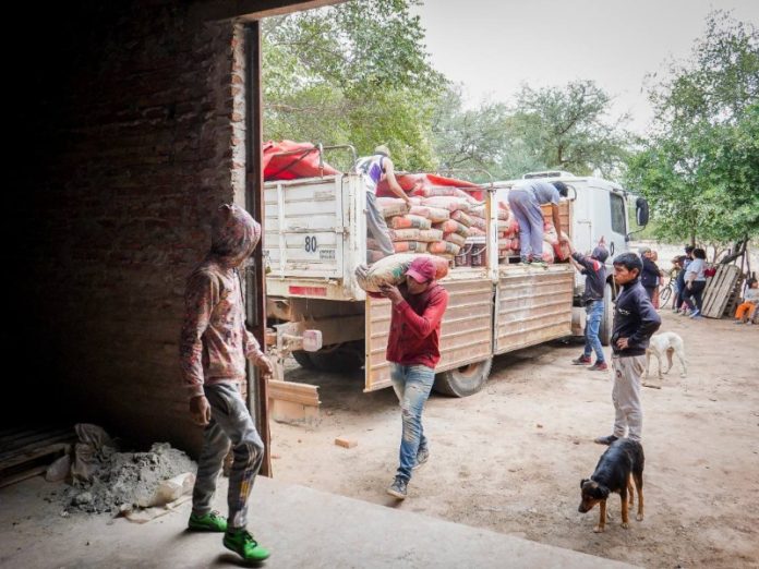 Locales | Desde el organismo provincial enviaron más materiales (cementos, ladrillos, piedras y arenas) al Paraje Tres Pozos donde avanza la obra del inmueble que lleva a cabo la Fundación "Fútbol por los Chicos".