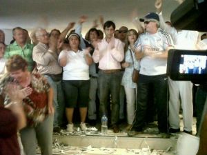 Locales | Luego del acto frente a Casa de Gobierno en repudio a los hechos violentos ocurridos en la jornada de ayer y mientras el ingreso al edificio se encuentra bloqueado por un vallado policial, doce personas del gremio UPCP que se encontraban afuera fueron habilitadas para ingresar. En la Asamblea se anunciará que mañana después de la reunión para la Conciliación Obligatoria se decidirá si se acatan a la medida.
