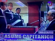 Locales | Con un escueto “Sí juro”, el reelecto Gobernador provincial cumplió con la metodología protocolar frente a las autoridades de la Cámara legislativa. Juan José Bergia fue el encargado de tomar juramento de lo que será el segundo mandato de Jorge Milton Capitanich y al también reelecto Vice Gobernador Juan Carlos Bacileff Ivanoff. E inició su discurso ante los legisladores destacando que “hay que aprovechar el escenario favorable, nacional e internacional”.