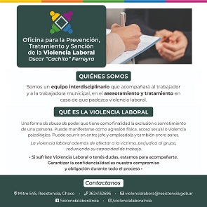 Locales | Desde su inauguración, la Oficina Interdisciplinaria para la Prevención, Tratamiento y Sanción de la Violencia Laboral “Oscar ‘Cachito’ Ferreyra”, lleva adelante una permanente labor, acompañando al trabajador municipal en el asesoramiento legal y contención psicológica ante situaciones que puedan padecer en el ámbito donde se presta servicios. Este mes se desarrollarán jornadas de capacitación al respecto.