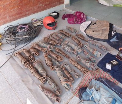 Locales | A 22 kilómetros de la localidad, en una zona boscosa los agentes incautaron cables, cobre y otros elementos, se investiga si fueron obtenidos de forma ilícita.