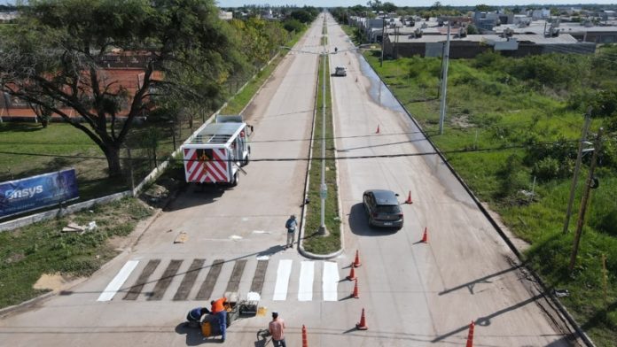 Vialidad Provincial informó que en la zona Norte de Resistencia se encuentra en su etapa final la pavimentación de la Avenida Juana Azurduy. Se trata de una obra que con tres frentes de trabajo registra un avance del 95% y que se prevé su finalización en los próximos días.