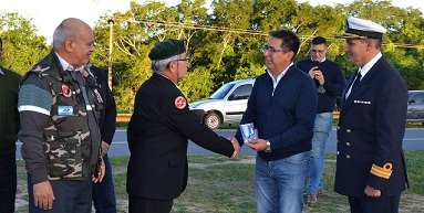 Locales | En el monumento en reconocimiento a los caídos y veteranos de la Guerra de Malvinas, ubicado en avenida Sarmiento, Gustavo acompañó el acto homenaje a excombatientes en conmemoración a los 40 años del hundimiento del ARA “General Belgrano”. En el crucero iban embarcados 12 chaqueños de los 323 soldados argentinos.