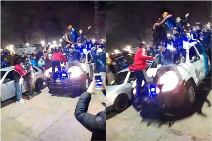 Nacionales | Enardecidos los hinchas interceptaron la camioneta de la policía y se subieron a los techos y al capó para celebrar el resultado de la final.