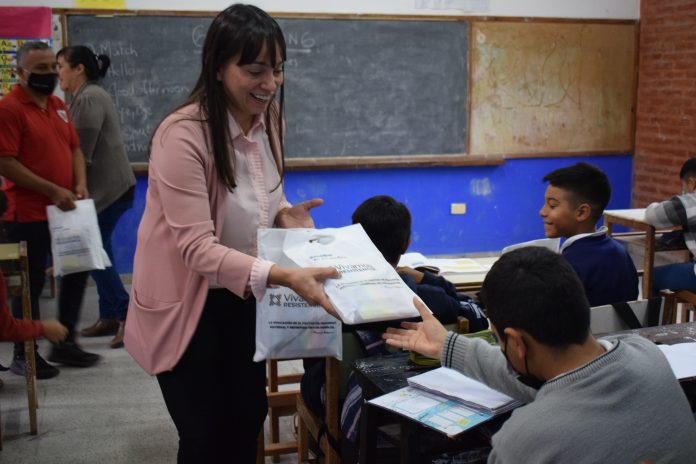Locales | En la Escuela de Educación Primaria Nº 893 “Hermanas de la Caridad de Quebec”, ubicada en el barrio Don Bosco, Resistencia entregó kits escolares para los alumnos y alumnas. Consistente en lápices, fibras, cuadernos y borradores, adquiridos con fondos municipales.