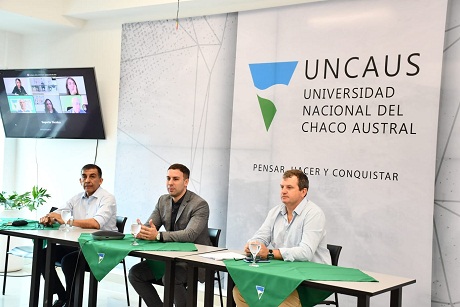 Locales | Se llevó a cabo una conferencia en Sala de Consejo de la Universidad, que fue presidida por el rector, Germán Oestmann, el secretario de Cooperación y Servicios Públicos, Néstor Dudik y el secretario de Bienestar Estudiantil, Daniel Barrionuevo, para coordinar acciones con personal docente, no docente y alumnos, sobre el Proyecto Nacional del Ministerio de Salud de la Nación “Universidades Saludables”.