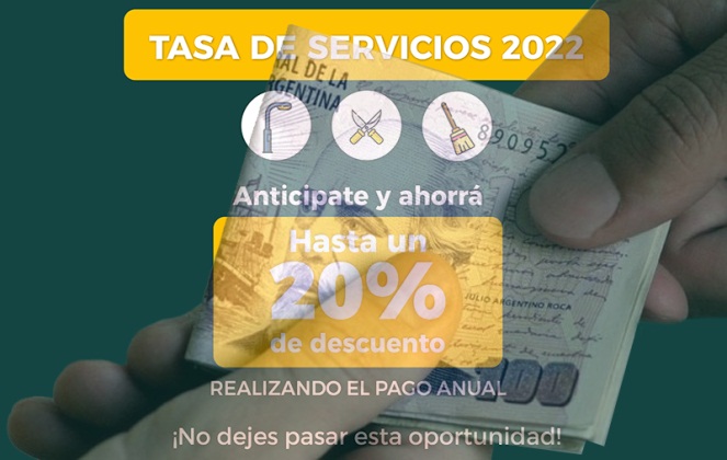 Locales | Este martes 22 de marzo vence el plazo para acogerse a los beneficios tributarios por el pago anual anticipado del impuesto por tasa de servicios. La promoción consiste en descuentos de un 10% por el abono anticipado del período 2022 y otro de igual porcentaje para aquel buen contribuyente que haya pagado sus impuestos en 2021.