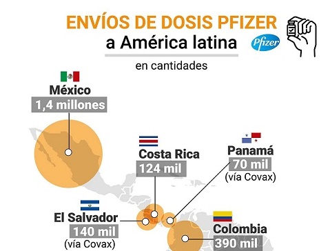 Nacionales | El laboratorio estadounidense, asociado con BioNTech, envió varios cargamentos a naciones con las que ha cerrado acuerdos o a través del sistema COVAX