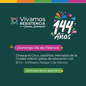 Locales | Resistencia cerrará este domingo 6 de febrero sus actividades que conmemoraron los 144 años de la capital chaqueña y para ello programó una nueva jornada destinada a que los niños disfruten del Parque 2 de Febrero con sus familias y amigos.